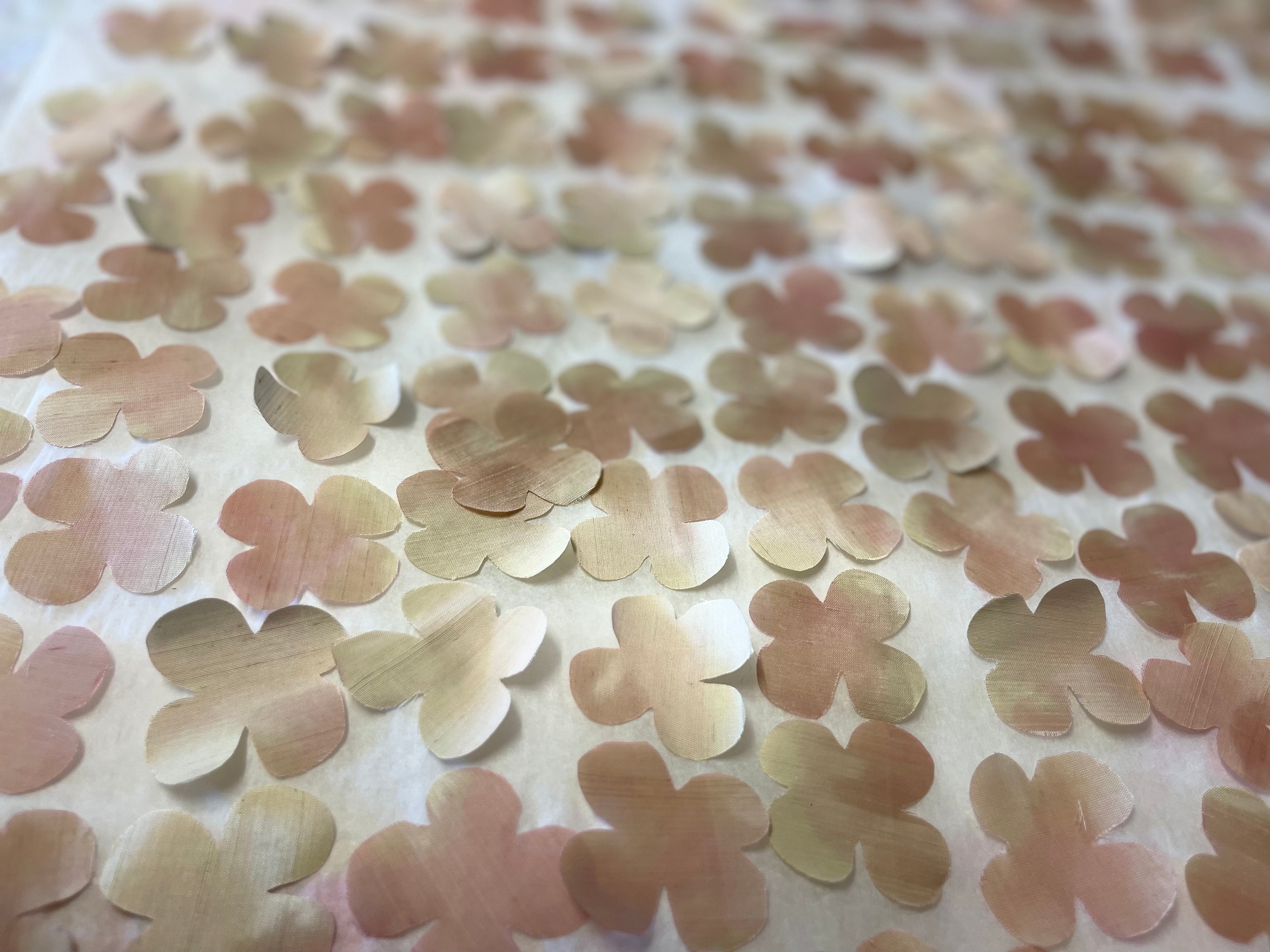 We create our fabric blooms in the centuries-long tradition of the European ateliers. Each bloom is created by hand with your fabric or ours, using antique tools and traditional techniques.